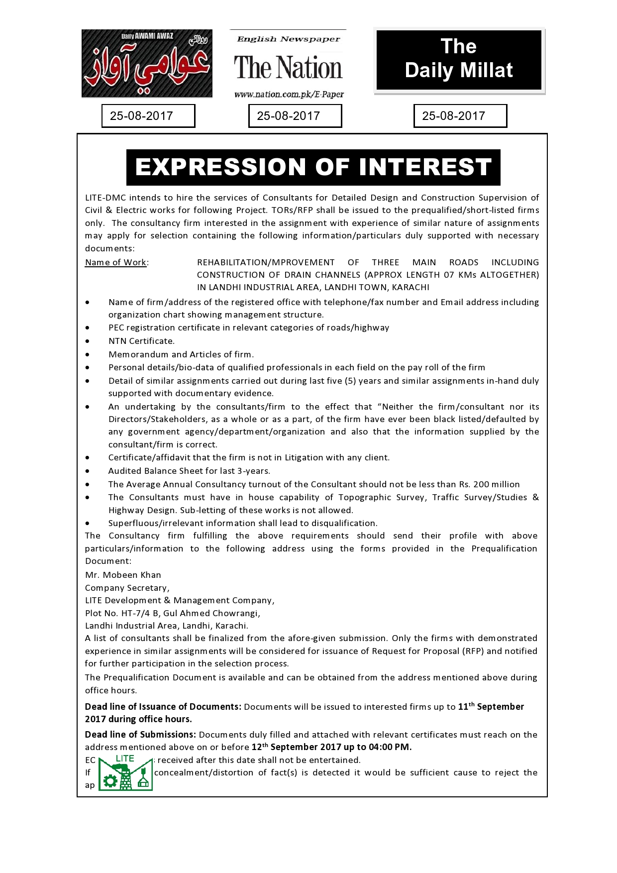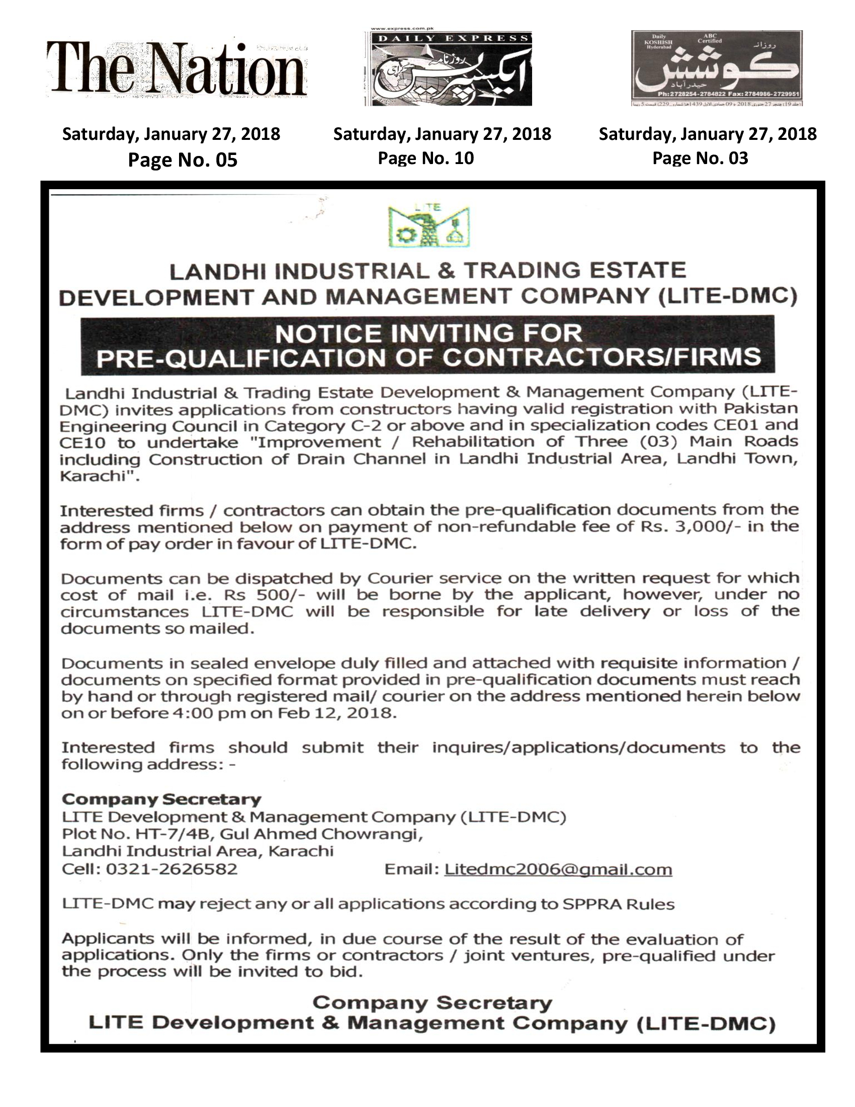 Improvement /Reconstruction of three roads of Landhi Industrial Area approx. 7km